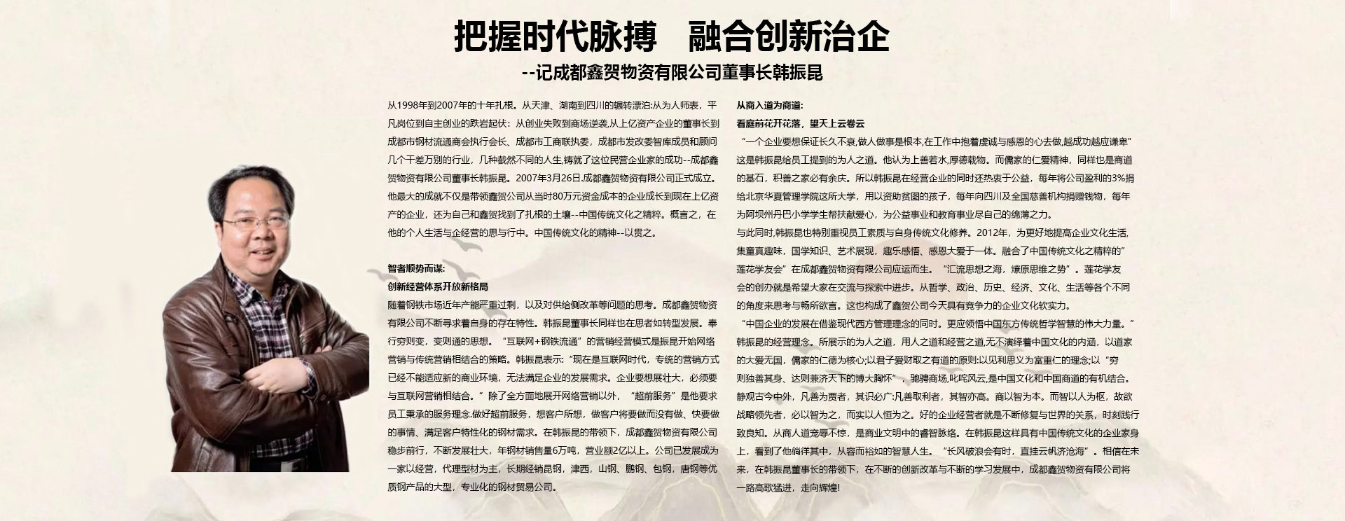 成都鑫賀物資有限公司成立于2007年,注冊資本為500萬元人民幣,是一家以經(jīng)營鋼材為主的商貿(mào)企業(yè)。